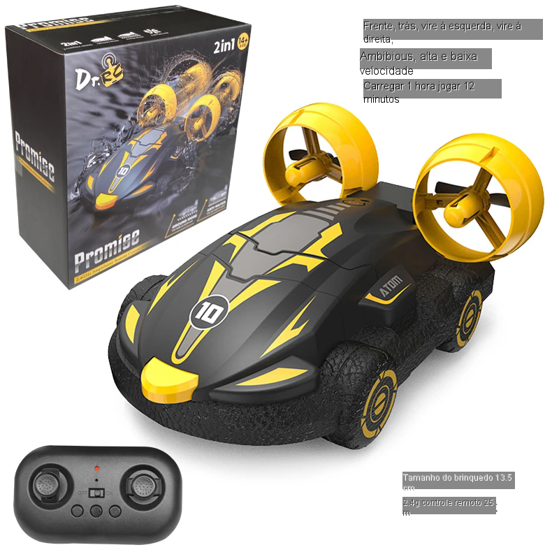 Água, terra e ar anfíbios dois em um hovercraft controlado remotamente, veículo aéreo não tripulado rápido, veículo à deriva, brinquedo de carregamento ao ar livre, alta velocidade