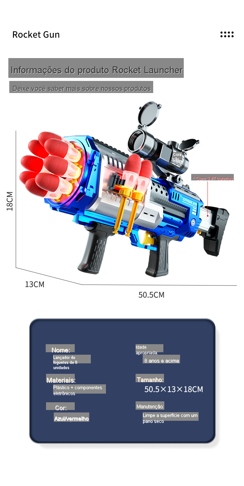 Presente de Aniversário do Menino 2025 Novo Som Infantil e Luz Elétrica Soft Bullet Gun Lançamento Contínuo Lançador de Foguete Simulação Battle Toy Gun